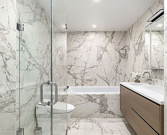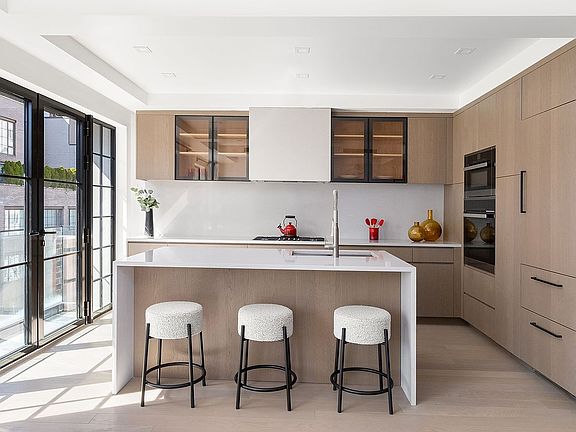 The entry foyer opens to an expansive great room and kitchen featuring a custom designed chef’s kitchen with quartz countertops and fully equipped with state-of-the-art Miele appliances. The primary suite features a large walk-in closet and a luxurious, spa-like en-suite bathroom. The secondary bedroom is well-proportioned with excellent closet space. This spectacular residence is rounded out with an in-residence laundry closet equipped with a Miele washer and dryer set.