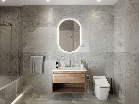 The primary bathroom is a sanctuary of relaxation, featuring luxurious details and high-end finishes. The walls and floors are adorned with large matte-finished slabs by Florim of Italy, creating a sleek and modern aesthetic. The bathroom has both a Shower enclosure as well as a large Jacuzzi Tub, providing a spa-like experience. The INAX sinks and electric Toilets manufactured in Japan add a touch of elegance and sophistication.
