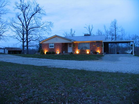 A SILK PURSE! Beautifully transformed from ''nice'' to EXTRAORDINARY! All brick basement rancher on 37.5 acres, charming country setting, circle drive, creative landscaping w/soft lighting added for beautiful twilight glow. Home has been completely redone, floor to ceiling throughout new paint, new doors & windows, new fixtures & ceiling fans, wood floors redone, kitchen a work of art with new cabinets & counters, premium grade flooring, work island, some new appliances. Walk-out basement has full bath, bedroom for overflow guests (could be gameroom/man cave) canning room, lots of dry storage & shelving. Gas glow burner in place for back up heat. approx. 6 acres cleared, new fencing & posts, 2 barns, storage bldg, water well for back up, great pond site on back of property.