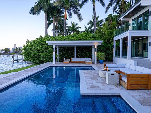 This stunning waterfront sanctuary on the prestigious Venetian Islands offers 90 feet of prime bay frontage, seamlessly blending serene privacy with the vibrant energy of Miami Beach. Set on a rare lot-and-a-half, this architectural gem is designed for the discerning art lover and entertainer alike. Inside, soaring ceilings and walls of glass flood the home with natural light, framing sweeping open bay views from nearly every room. The expansive floor plan connects effortlessly to outdoor living areas, where a custom summer kitchen, Brazilian-style BBQ and pizza oven, and sparkling private pool await. Host unforgettable gatherings poolside or unwind under the stars in the elegant lounge areas with gas fire features. A newly designed chef’s kitchen, marble floors, and gallery-style walls enhance the home’s sophisticated yet relaxed ambiance. The property includes 6 bedrooms, 6.5 baths, a custom 4-car garage, and breathtaking view of blue oceans and this wonderful city. A true Miami masterpiece, this is waterfront living elevated. Minutes from Sunset Harbor, the Design District, world-class shopping, dining, and culture. Originally built in 1939, but fully remodeled with permits in 2015. Effective year built per Property Appraiser is 2015.