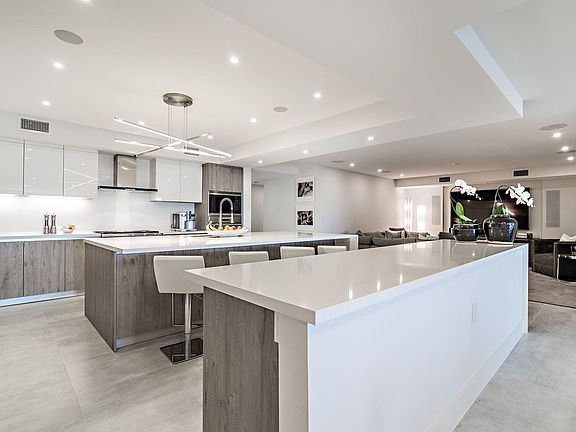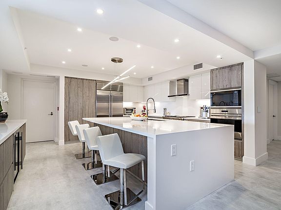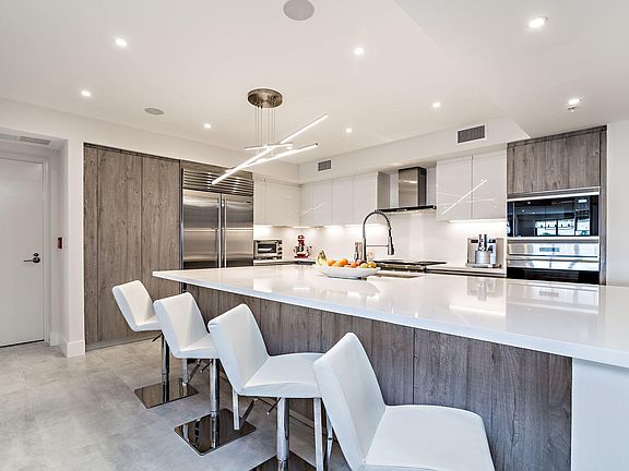When you step out of your access controlled private elevator that delivers you directly to your unit, you'll be impressed with the vastness of the three bedroom/three bathroom plus den floor plan. A large kitchen features double islands, luxurious Italian cabinetry, Sub Zero and Wolf appliances, quartz countertops and Kohler faucets. 24 x 48 porcelain tile was laid throughout all living areas. The same exquisite cabinetry and countertops are found in all the bathrooms which each have their own unique look and interior design. One of the best features of this home is the enormous balcony, equipped with a summer kitchen that overlooks the Boca Resort golf course. Watch the sun rise and set in this additional living space. The building sits in one of the best locations in Downtown Boca Raton.