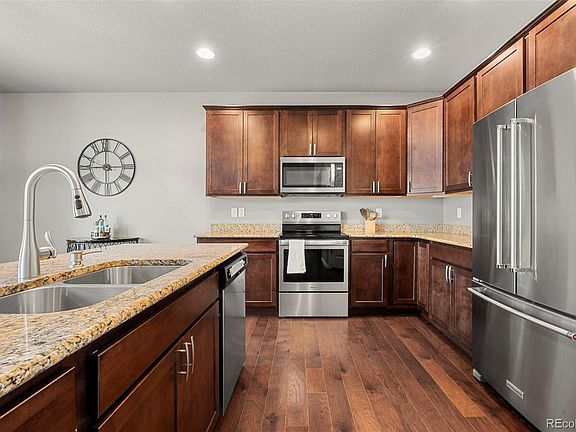 The luxurious primary suite features a 5-piece bathroom with a dual sided fireplace to keep toasty on these cold winter evenings. Outside, the xeriscaped backyard requires minimal upkeep, leaving you more time to enjoy the Colorado sunshine. A 3-car garage provides ample space for vehicles and storage, and very low community fees grant access to a refreshing community pool for those warm summer days just around the corner.