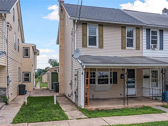 Nestled on a quaint street in the Borough of Topton, this 3 bedroom, 1 and a half bathroom twin offers the lifestyle you've been looking for! The covered front porch welcomes you to the spacious living room with a beautiful bay window for gazing. Open dining room features a warm and cozy wood stove for those cold winter evenings. The kitchen with newer appliances and ample storage affords plenty of space for entertaining with a bonus dinette! The second level is complete with a large master bedroom, expansive full bathroom with laundry area, and second bedroom. The third-floor bedroom offers all the privacy you need. Outside you will enjoy a backyard perfect for barbecues! Large shed for all of your storage needs and a 2-car parking pad. Walking distance to park, schools, and restaurants. Don't miss this opportunity!