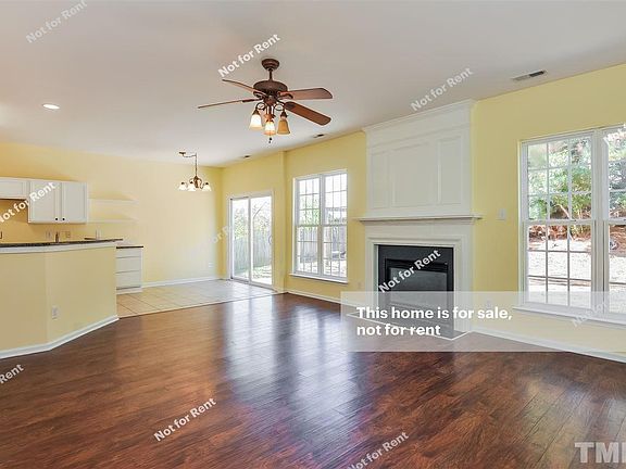 This Apex home offers a patio, a loft, hardwood flooring, a fireplace, and a two-car garage.