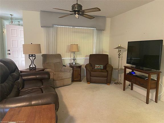 Looking for a great retirement area in Florida? You just found it. This villa is furnished, ready to move into. The kitchen features lots of cabinets and a sit-down bar. The huge dining area is perfect for having extra family or guests in for dinner. The family room is spacious with TV in place and ready for you to watch your favorite shows. You will love the big master bedroom. The master suite offers 2 separate vanities and a huge walk-in closet. The guest bedroom is also big and has its own bathroom. Both bathrooms have skylights. The golf cart stays. There is a special path for going to and from the popular 18 hole golf course. The HOA includes exterior insurance, maintenance, roof, pain, t lawn care, and clubhouse with heated pool. Call today for a showing. This one won't last long.