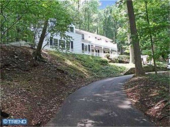 Feel the calm and serenity of this beautifully maintained, 3 Bedroom, 3 full Bath Colonial with many upgrades on a quiet, secluded, wooded lot. First floor: After sitting on the front porch enjoying the peaceful view, you return to a grand house through the front Foyer. To the left is the large Living Room/Parlor with beautiful custom Mahogany woodwork, old world marble fireplace & hardwood floors, French doors lead to the Guest Bedroom w/ adjoining Bath. To the right is the formal Dining Room with lovely Mahogany built-ins, sliders to patio & back yard. Large Eat-In gourmet Kitchen with tray ceiling opens to Den with unique windows w/ lots of natural light and views of your property. The 12-foot ceilings give the first floor a wonderful feeling of openness. Second level: Master Bedroom with hardwood floors and adjoining full Master Bath w/ skylights. The Bedroom opens to a Balcony with gorgeous private views. Second Bedroom has very nice closet space. Above the expansive 2 car detached garage is a private room that has a separate entrance, plumbing and is wired to be made into a quiet Office, handyman's shop, etc. Well pump house (with new pump) sits just to the side of the garage and the home was recently connected to the public sewer system. Exterior freshly painted. EZ access to Blue Rte., Center City, Airport, Valley Forge National Park and King Of Prussia Mall.