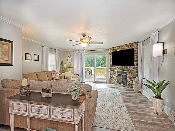 This spacious 4-bedroom, 3-bath home offers comfort, style, and flexibility with thoughtful updates throughout. The fully renovated kitchen features granite countertops, two pantries, and ample workspace for the home chef. Just off the kitchen, the large dining room is perfect for hosting gatherings. The oversized family room with a cozy stone fireplace invites you to relax and unwind, while the sun-filled three-season room offers a peaceful retreat. The walkout lower level provides a private living space complete with a full second kitchen, a bedroom, full bath, and its own living area, perfect for guests, in-laws, or multi-generational living. Outdoor areas are beautifully designed for both entertaining and everyday enjoyment. A large shed with electricity provides extra storage and a workshop space ideal for hobbies or projects. Located just steps from Laura Doerr Park and nearby walking trails, this move-in-ready home blends modern updates with a quiet, convenient setting!