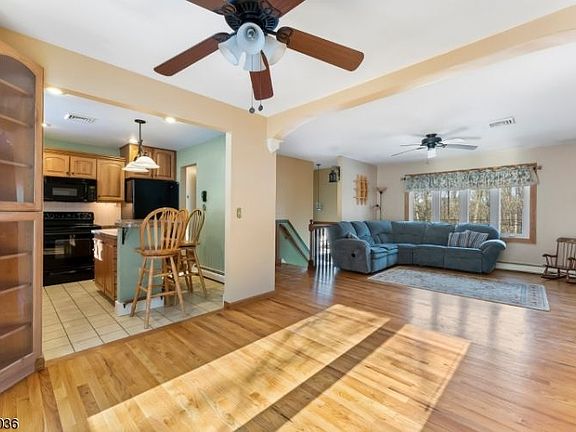 Located on a beautiful country road, this updated Washington Twp home has the best of both worlds - private, peaceful wooded setting, yet close to schools and shopping. The roof is less than one year old. Upstairs you will find hardwood through most of the rooms, and a formal living room and dining room, kitchen, full bathroom that has been updated, and 3 bedrooms. The kitchen has been remodeled with maple cabinets and center island. The ground level features tile floor throughout, a bedroom (currently used as an office), family room with wood burning stove and built ins, laundry powder room, utility room, storage, and garage entrance. The multi-tiered backyard has a fire pit area and backs to woods. Minutes to Oxford Furnace lake, and Griffith Woods Natural Area hiking trail is across the street. Great opportunity to get into a desirable town with excellent schools, community events, robust recreation program, and apx 1 hour from Newark airport.