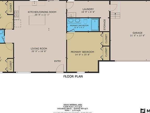 - Total interior livable area: 1,413 sqft
