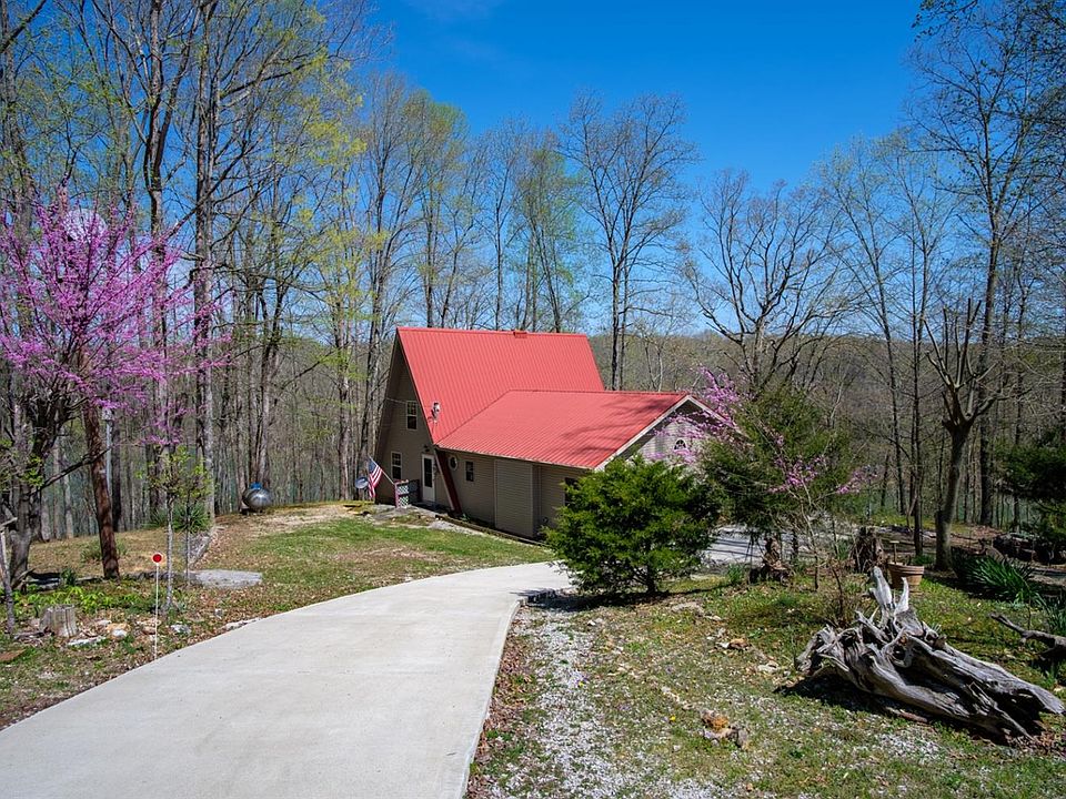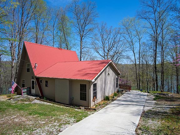 Gorgeous 180 degree Lake Views, A-Frame Lake House in Nancy, KY on Lake Cumberland! Great location near Conley Bottom & walk-able to community center. 3 Bdrm & 2.5 Baths await you after a day of boating. Relax in your cozy living room w/beautiful floor to ceiling stone fireplace (gas logs). Step out on your covered patio & take in the view. Enjoy the open layout with high ceilings leading you to a 2nd story loft w/half bath. Huge Master Bedroom with sitting area, another gas fireplace and access to patio. Plenty of storage with walk-in closets in both first floor bedrooms. Unfinished basement is perfect for additional storage or to finish for more space. All appliances stay with property! Sits on secluded 4 double lots with room to build on. There is a double carport and 10x20 shed. Optional add-ons include Pontoon Boat $6k, Boat Slip on Community Dock $6200, Double Lot .459 acres adjacent to property (build on or keep private) $10K & Lot across the street from property $7K.