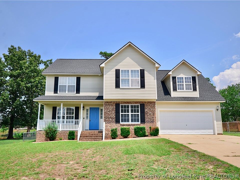 This 4BR home with over 2,200sqft is conveniently near shopping, schools, restaurants & 20min to Ft. Liberty. This great home is in a family friendly neighborhood & move-in ready! Upgraded laminate flooring in the lrg family rm, formal dining rm & eat-in kitchen. Spacious kitchen w/granite counters, SS appliances & pantry. Updated lighting/ceiling fans throughout. Nest thermostats up/downstairs. Upstairs you'll find newly installed upgraded carpet. 4Lrg BR's & laundry upstairs. Master suite w/trey ceiling, double vanity, soaking tub, sep shower & large WIC. The bonus rm is the 4th BR w/access to a WIC & full bath, making this a truly well-designed home. Ensure your family's well-being w/a whole-house water filtration system. Water heater is only 1yr old & Roof is less than 5 yrs old. Relax on the deck overlooking the fenced backyard w/concrete curbing accenting the back & front yard. Flat backyard w/brick pavers for the grill. Just an hour drive to Raleigh!