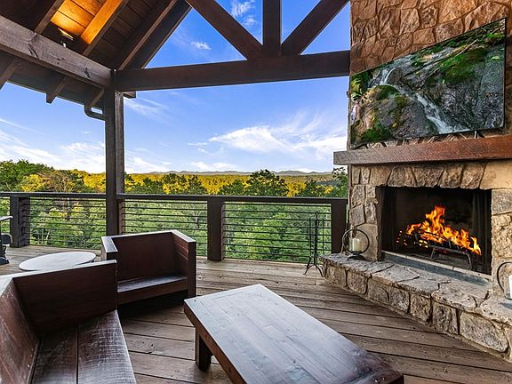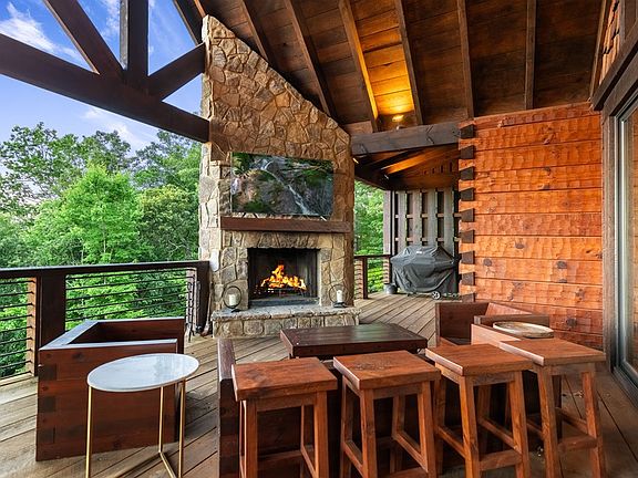 Welcome to this modern rustic chalet built by Keith Sumner Homes which epitomizes luxury and craftsmanship. This home boasts 3 spacious bedrooms, 3.5 bathrooms, and an additional 4 bed bunk room, offering ample space for family and guests. It's designed to capture the breathtaking long-range mountain views, providing a serene and scenic backdrop. The heart of the home is the chef's kitchen, featuring sleek concrete countertops and a butler's pantry, perfect for culinary enthusiasts. This home has two stone fireplaces inside plus an additional outdoor fireplace, ideal for year-round entertaining and relaxation. You will also find cathedral ceilings, floor to ceiling windows, large decks, views from every room, stone accents, a wet bar and hot tub. Located just 1 mile from Old Toccoa Farm and the Toccoa River, and a mere 6 miles from downtown Blue Ridge, this cabin offers the perfect blend of seclusion and convenience. High-end finishes throughout the home showcase the meticulous attention to detail and superior quality that Keith Sumner Homes is renowned for. Experience the ultimate mountain retreat in this stunning modern rustic chalet.