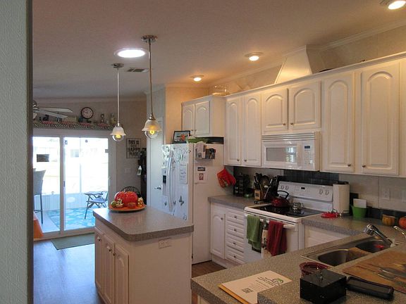THIS HOME IS ON LEASED LAND WITH MONTHLY FEES OF 455.18 MOVE-IN READY HOME IN LIKE-NEW CONDITION! VERY OPEN FLOOR PLAN! MOTIVATED! THREE BEDROOM, AND TWO BATHROOM. A GREAT, AFFORDABLE FLORIDA HOME. SITUATED IN CYPRESS CREEK VILLAGE A BEAUTIFUL 55+ COMMUNITY LIVING ROOM 13' 8 x 12' 6 Enter the home into the bright and open large living area, open to the kitchen. Perfect sized living room with carpeted flooring, ceiling fan. KITCHEN 9' 1 x 18 Gourmet Style Kitchen with Island and laminate wood flooring! Features Include Double Sink with sprayer, Garbage Disposal, Lots of Drawers, More than Ample Counter Space and Cabinets. 2 Bar Stools. Appliances Include: Frigidaire Dishwasher, Frigidaire Smooth-top Stove, Built-in Microwave, Kenmore Side by Side Refrigerator. BREAKFAST NOOK A cozy breakfast nook that is large enough to fit a small table or bistro set. Laminate wood flooring and double sliding door entry to Florida Room MASTER RETREAT 12' 8 x 15' 9 This King-Sized Master Retreat is Beautiful with carpeted flooring and ceiling fan, with a large closet that measures 5' 7 x 5. Open to Private Master Bath MASTER BATH Massive Bath with Dual Vanity with Mirror, walk in shower, A large linen closet, and laminate wood flooring GUEST ROOM 1 11- x 9' 4 You will love this room with beautiful double door entry and a built in desk! Carpeted flooring with a ceiling fan, closet measures 2' 3 x 6' 3 HALL BATH Laminate wood flooring with the perfect size vanity and a tub and shower combination. Private Entry/Exit to Guest Room. GUEST ROOM 2 10' 6 x 10' 3 A light colored beige room awaits your guests! Carpeted flooring with a ceiling fan, double closets and Private entry to guest bath. LAUNDRY ROOM Off kitchen/dining, Cabinets above as well as a storage closet SCREENED FLORIDA ROOM 14 x 10 Located off the Kitchen with Glass Double Door Entry this Gorgeous Florida Room Perfect for Entertaining! WHAT A VIEW!!! PATIO Located off the Florida room is the perfect spot to BBQ! This patio has epoxy coating so your feet do not get hot from the Florida sun or you do not slip on a rainy day! SHED 12 x 6 Perfect place for all your extras with Shelving EXTERIOR Carport is covered with epoxy coating Enclosed under the home Fruit Trees Beautifully Landscaped No Rear Neighbors 2 View like no other, one in the front and one in the rear of the home ABOUT THE PARK: Cypress Creek Village is a Gorgeous Gated Community in a Country Setting. Located in South East Winter Haven just minutes away from HWY 27 Makes for Easy Access to Orlando. The Daily, Weekly and Monthly Activities are held in the Residents Club House. You will Love the Large Heated Swimming Pool and Spa. Additional Features: Onsite State of the Art Work Out Facility, and a Gorgeous Billiard Room, and Shuffleboard. One of Winter Haven's Golf Courses is Right Across the Street! You will Love Living Here! There is Always Something Going on at the Club House and the Grounds are Very Manicured! No Credit Check with Application! Cypress Creek Village is located 1/2 mile west of HWY 27, right off Dundee Road (SR542). Winter Haven is a beautiful area which boasts the "Chain of Lakes" - 16 lakes connected by channels. There are many excellent shopping centers including a Wal-Mart Super Center on Cypress Gardens Blvd. Winter Haven Hospital, Heart of Florida Hospital....not to mention the many lakes and golf courses. All of this is within 10 miles of Cypress Creek Village. PLUS, The Park is 45 miles to all the Disney attractions, 40 miles to Bush Gardens and 5 miles to Legoland!! All listing information is deemed reliable but not guaranteed and should be independently verified through personal inspection by appropriate professionals. American Mobile Home Sales of Tampa Bay, Inc. cannot guarantee or warrant the accuracy of this information or condition of this property. All measurements are approximate. The buyer assumes full respo