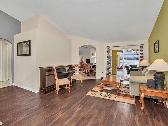 Welcome to your new Pool Home! This immaculate partially furnished home is located in sought after Tuscan Ridge, and is a spacious 2,161 square feet of living space with four bedrooms and three baths and a 2-car garage! Vaulted ceilings and an open and bright split floor plan, recessed lighting, arched doorways, tray ceilings, and lots of transom windows to let in plenty of natural light create a warm, welcoming atmosphere. The spacious kitchen is adorned with neutral colors, ceramic tile flooring, a gas stove, lots of cabinetry and counter space, breakfast bar seating, and a nook area next to the bay window that overlooks the pool. Opening up to the family room, you will be able to entertain your guests while fixing fabulous meals, while also enjoying the views of the beautiful backyard and patio. The master bedroom suite is bright and generous in size, and offers a vaulted ceiling, sliding glass doors leading out to the lanai, two walk-in closets, an en-suite master bathroom with his and hers vanities, a walk-in glass enclosed shower, and a garden tub for relaxing those tired muscles. The additional bedrooms are split, allowing for privacy from other household members and guests, with a wet bathroom for pool access. The covered enclosed lanai gives you plenty of space for relaxing and entertaining by the free-form pool. This quiet community is within a short drive to Disney's theme parks, shopping malls, restaurants, I-4 and other major roadways, making it an ideal location to call home. Pine trees border the west side of the community, and the protected Florida Swamp area is further west, where you may see a multitude of wildlife grazing the grounds. Low HOA fees give you access to tennis courts, a clubhouse, and other common areas. Schedule your appointment today to see this gem! ** multiple offers received on this property. Please submit highest and best by 6pm 2/1/21. **