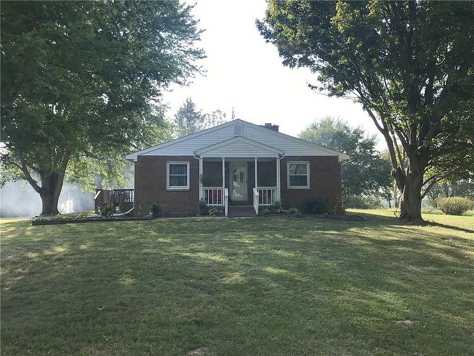 Located just east of Connersville. Well Maintained 3BR 2.5BA Brick Ranch w/Fin Full carpeted Basement and 2 car det garage on 10 Acres. Spacious Kitchen w/some updates offers large Island/Breakfast Bar & All Appliances Stay, plus Nice Laminate Flooring! The Home has a Brick Fireplace in Living Room w/large picture window offering lots of light. Spacious Master Bed w/hardwood floors and large closet, bedroom 2 has hrdwds and large closet, 3 has laminate floors and large closet. Basement offers Bonus Room with 2nd Fireplace, Game Room ( could be extra bedroom ) 2 storage rooms.. Pole Barn with/ electric. Home is pre-wired for a Generator. Hot Water Heater & A/C are 2 yrs old. So Much Space Here... Lots of Possibilities! Home is a Must See!