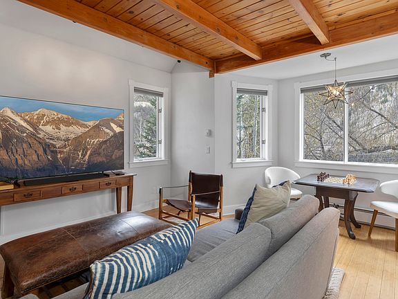 This 3 bedroom, 2.5 bathroom condo is a hidden gem in the middle of the sunny side of Telluride. While part of a small 3 unit HOA, this condo lives like a single family home with three levels of living, large deck space for outdoor living, and a proper grass yard and garden. Just two blocks to the core of downtown Telluride and three blocks to the gondola and skiing makes this central location ideal for those looking to keep life easy. This condo was remodeled and updated in 2018 and a new deck was installed in 2023. The Sunburst Condominiums are situated in a beautiful building on a sprawling lot and received a new roof in 2018 and new sewer line in 2023. One off-street parking space right outside your door.