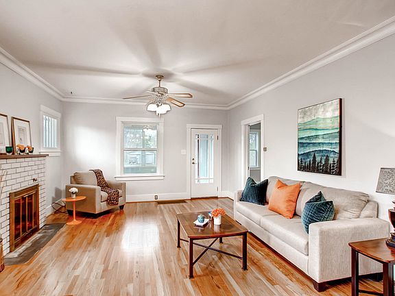 Marvelous 1923 rancher is gorgeous and move-in ready! The original wood floors were just refinished and look stunning! The fresh interior paint provides a bright, blank canvas ready for your personal touch. In addition to three bedrooms on the main level, there are two bathrooms and a delightful fully enclosed front porch with vinyl windows. The bedroom at the front of the house offers a private exterior door to the enclosed porch and an attached en suite, perfect for a master bedroom or as a studio rental. While there is a large dining space in the open concept main room, the eat-in country kitchen boasts a great little dining nook, a generous amount of counter space, and lots of storage including a spice cabinet and a large pantry right next to the side exterior door (perfect for unloading groceries!). Downstairs there is lots of storage space, a workshop attached to the utility area, a large laundry space, and a spacious 4th bedroom. Outside you'll find a very large lot, detached garage, and a good size shed. In addition to the fenced yard, there is an enclosed garden space, a mature apple tree, and a 21x21 foot deck, perfect for entertaining! There is also an 8-person, red cedar, barrel sauna. It was made by hand in Minnesota and it is a true barrel sauna in that it has no fasteners, no nails, no screws, etc. The current property owner had the sewer line scoped and extensively repaired. The roof was replaced with a multi-dimensional shingle in 2014. This property is in a great location, just steps from the Olympic Training Center, Memorial Hospital, and Boulder Park. It's an easy walk to get groceries, enjoy the local coffee shop, and other dining and shopping amenities. Just 1.2 miles to downtown Colorado Springs or a half mile to Memorial Park!