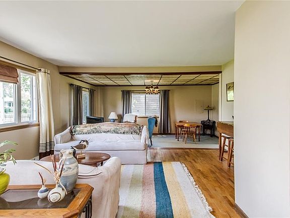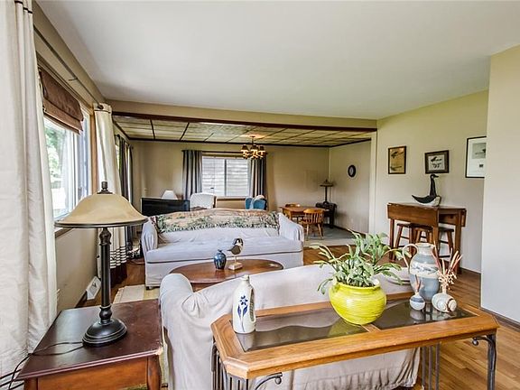 Enjoy this 3 bed/2 full bath ranch home on over 1/4 acre lot located on a quiet cul-de-sac! A 2-car detached garage, spacious and open living/family/dining space, a completely remodeled kitchen, and original hardwood floors. Newer windows & vinyl siding, natural gas heat, central air, and city water/sewage make this an efficient home. All appliances & majority of furnishings convey. Relax on the front porch or in the large backyard. Don't miss your chance, call to schedule your private showing!