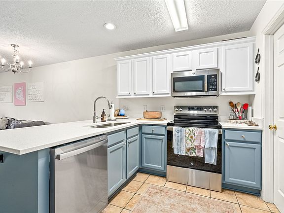 - Description: All Appliances stay, New Counters & sinks, painted cabinets,Flooring: Tile