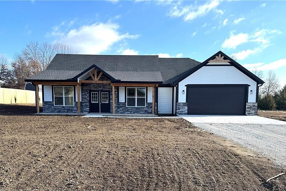 UPGRADED NEW CONSTRUCTION w/ modern finishes! This gorgeous 3 Bedroom 2 bathroom home will WOW you! Let time pass you by on the large custom wood beamed covered porch. Double front door & Soaring ceilings in the oversized living room. (9'-10' ceilings throughout remaining home) UPGRADED Luxury Vinyl Plank flooring throughout main areas. The Chefs kitchen includes white shaker cabinets, Large Island, granite, a walk-in pantry. Fall in love with this stunning Owners suite with 11' tray ceilings, double sinks, double walk-in closets, custom tile shower w/ double shower heads & a soaking tub. Rear patio overlooking mature treed yard on this .68 acre lot. This is a home you don't want to miss. Located in the all new Phase II of the Riverwood subdivision. Easy access to shopping, dining, Business 13 hwy, 13 hwy & Whiteman AFB. Call today for a showing. Processional Photos coming soon.