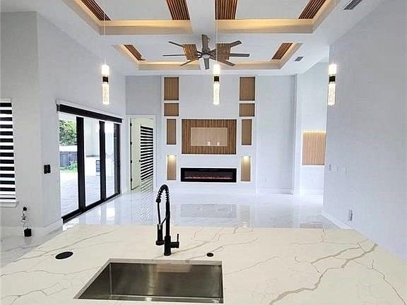 Beautiful Brand-New Pool Home 3 Car Garage. This Custom-built home features 4 Bedrooms, 3 Bathrooms, Quartz countertops in Kitchen and Bathrooms, Quartz backsplash, upgraded Stainless Steel kitchen appliances, Washer & Dryer, Electric fireplace, upgraded lighting, fans and fixtures. Walk in Wine Cooler! Owners bath features dual sinks, walk around shower, soaker tub. Tray ceilings, and Owners Bedroom. 8' Sliders and doors, Custom Walk-in closets, 32"Tile floors throughout. Impact Windows & Doors. Beautiful Saltwater pool, Pool heater, pool deck, outdoor kitchen, wine cooler, Gas grill, Outdoor Shower, Epoxy Garage floor, Plenty of recessed lighting, Sprinkler System, Fenced Yard! Conveniently located, minutes to shopping and restaurants!