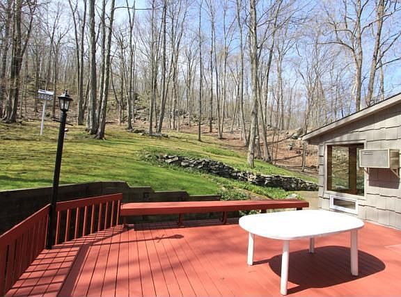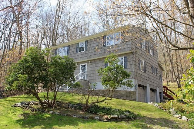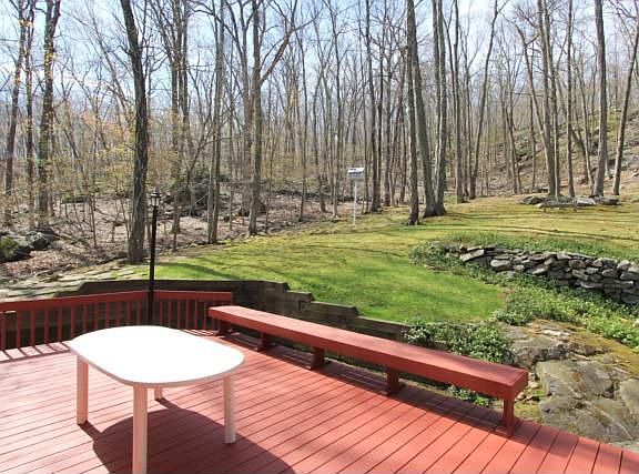 Sparkling CH Col.New roof. Entire house painted in and out Beautiful setting 2 priv. wooded Acres w/massive rock outcroppings. Wraparound deck + patio, useable b'yard.Bright FR/SunRm (sep.heat and AC) Frnt to back LR w/raised hearth fp, Formal DR, Lg MBR w/bth, All bths updated. Lg EIK w/solid wood cabs, random width pegged flrs, Pristine Super dry bsmnt Lake Hawthorne rights (beach/swim/fish/boat). 5 min to GB train, 684, shopping. Superior NS Schls. STAR savings 1357.