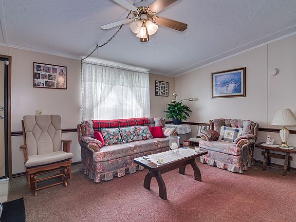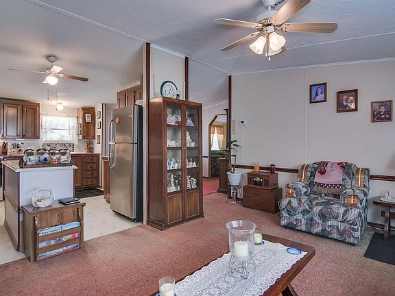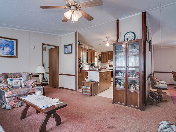 8 Acres with well maintained MH. Roof 2012, water heater 2013, 3.5 ton HP 2015, well motor 2016. Land is level, wooded, with several pathways thru property. Fence posts in place for of border. Several outbldgs. Corner FP in den. Formal dining & living room. Kitchen w/island & under cabinet lights. Quiet country setting.