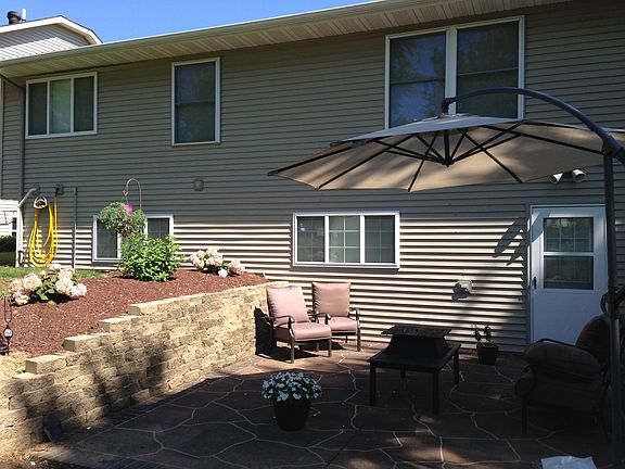 Enjoy this beautiful open floor plan zero lot home with many modifications including wood floors, quartz counter tops, newer carpets, updated bathrooms and more. Home has 2 nonconforming bedrooms on LL that could be changed. Large family room in basement with wet bar/sink. Central vac in home. Beautiful breakfast nook area with bow windows. Large open main living area with gas fireplace. Walkout basement with large patio and retaining wall for entertaining family and friends.Large Call for a showing today.