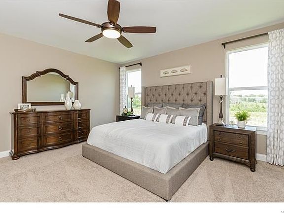 MOVE IN READY, BUILDER DISPLAY in Legends Pointe! This 1.5 story home has 5 BD, 4.5 BA and 4,213 s/f of finished living space. Features inc a MAIN FLOOR MASTER, 9 ft clngs with dramatic vaults, gas FP, wood laminate floors, staggered height cabinets with crown, island with seating bar, SS appl inc refrig, Quartz countertops, Butlers pantry, wrought iron spindled stair railing, formal DR, Office with French doors, main floor laundry, transom windows, R 38 ceiling insulation, jack and jill bath, princess suite, Bonus Rm, composite deck, dual HVAC and more. The Mstr bath has raised height dbl bowl vanities, soaking tub, sep shower and W/I closet with cust organizers. The finished, walkout, LL is amazing with a Fam/Rec Rm, Bar, Bdr and full bath. The ext is stunning with brick, vertical accent siding, chalet roofline, prof landscape, full sod and irrig system. There is a 3 car garage (3rd car is tandem). Fantastic location near Hwys 40/64, 364 and desirable Wentzville schools. It's a WOW!