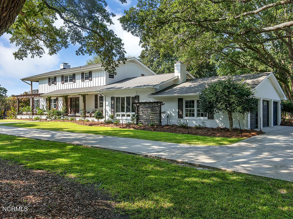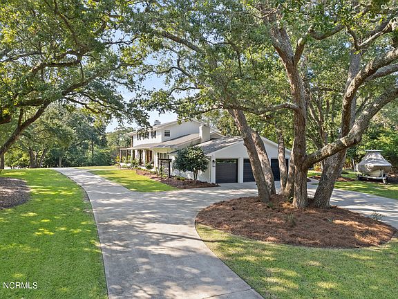 Location, location, stunning coastal location! You can have it all in this spectacular home with majestic live oak trees in your front yard and the most beautiful Magnolia tree in the back. Over 1.5 acres of coastal North Carolina nature is the setting for this amazing home. There are 3+ bedrooms and plenty of room for family and guests. The heart of the home is not only the kitchen but the oversized family room. Hardwood floors all around, slate flooring in two story foyer and customized laundry room, two wood burning fireplaces and the list goes on. The kitchen has been customized with you in mind - custom cabinets, quartz countertops and back splash, large single basin sink, 2 dishwashers, beverage fridge and ice maker, built in microwave, large fridge and freezer, oven hood and RO under sink and an icemaker. Water filtration for the entire home is another plus. Plug in a generator and charge your electric car in the garage which has new doors. Two new electric panels, professional landscaping, a new pergola, raised garden beds on deck, outdoor surfboard and kayak rack are additional upgrades. The master bath, powder room and laundry have recently been upgraded with custom details. Walk through the house yourself and be mesmerized by the views of not only your own garden but also the ICWW through the trees. And because that could not be all, the community provides access to the ICWW, bring your boat and be in WB in 25 min or in Topsail in about the same distance. See the list of recent renovations under documents and book your private tour today.
