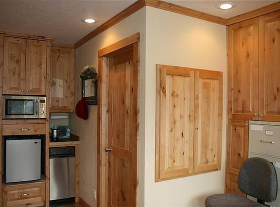 Purchase your own office space & stop paying rent. Beautiful office with knotty alder finishes throughout, custom cabinetry, kitchenette, DSL and finished bathroom. The identical unit next door with the same space has created two offices and a waiting room with the same space. If you are an investor or company, this building is an ideal location in the city limits of Sandpoint & close to EVERYTHING! Priced to sell!