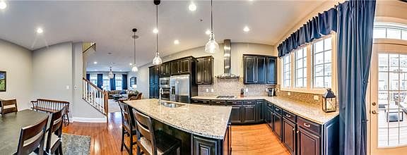 Heartland Homes Fabulous John Jacob Astor Model. Front door entry leads into the finished game room with powder room, utility room and access to the rear entry 2 car garage. Hardwood floors adorn the main floor Kitchen, powder room and breakfast eating area. High ceilings and open floor concept allow flexibility in how your furniture placement is. Fully equipped kitchen offers rich wooden cabinetry, granite counter tops, exquisite back splash, SS built-in oven, SS microwave, gas cook top, SS refrigerator, loads of recessed lighting, and an island with pendant lights. The Gourmet Chef will appreciate and enjoy this space! Anderson windows are located throughout. The rear wall of the kitchen is lined with several windows. 18 x 17 low maintenance deck added in 2017 is ideal for entertaining all of your friends and family under the stars. This town home boasts surround sound in the basement, main level, & master bedroom. 2nd fl laundry. Master Suite has tray ceilings and walk-in closet.