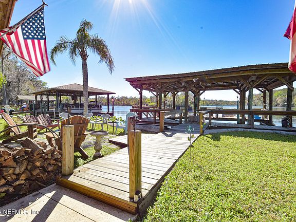 Extra large covered party deck waterside plus boathouse and lift. An additional bonus is a boat ramp too! This property is ready for that avid fisherman with deep water, perfect for fishing from the dock or take the boat out for a day on the St Johns River and Dunn's Creek. Plenty of parking on concrete plus a spot for the RV/Motorhome. Well maintained home with wood burning fireplace and picture windows to bring the jaw dropping water views and sunsets even closer! So much to enjoy and memories to create! Get your groceries, you may never want to leave! Make sure to view the photos for sunsets and catch of the day!