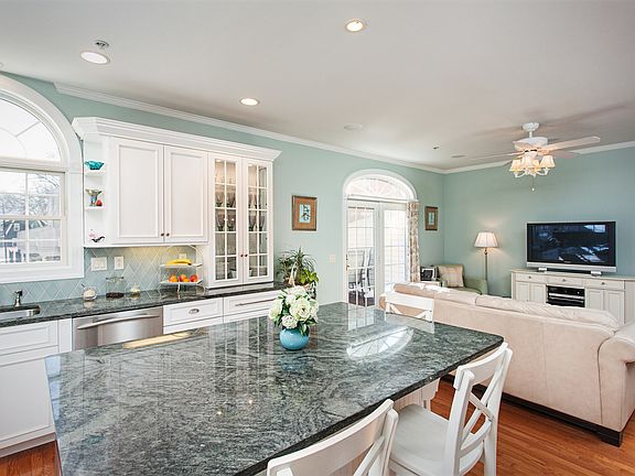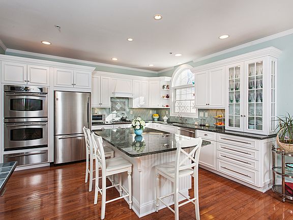 An expansive and light-filled 2,976 square foot townhouse spread over three floors of living space featuring an open layout, 3 bedrooms, 2.5 bathrooms, 9' ceilings with chandeliers in almost every room, crown molding and hardwood flooring throughout. The open kitchen features stainless steel appliances, beautiful white custom cabinetry, granite countertops, custom backsplash, an extremely large center island and a spacious rear deck (27' x 10') with teak wood flooring. The main level also includes a sun filled family room, a formal dining room, a large formal living room with a gas fireplace, a half bathroom, and a large pantry/coat closet. The second floor features a large master (16' x 17') suite with an extra large walk-in closet (with pull-down stair access to incredible attic storage space), a luxurious master bathroom with a jacuzzi tub, a bidet, and double sinks including a built-in makeup vanity. The second bedroom (15' x 13') features a large closet and a full-length, custom built-in window seat with storage. Also on this floor is a third bedroom, a guest bathroom, and the washer/dryer are conveniently located off the center hallway right outside the bedrooms. On the lower level is an enormous multi-purpose room (27' x 22') that can be used as a media room, a home gym, a play room or home office. Thethree-car garage comes with a large sink and lots of built-in ceiling storage racks. Rutherford boasts award-winning school systems and is located just 8 miles from NYC with the bus to Port Authority stopping right down the street and the train line approximately 1 mile away. This residence is within close proximity to many major highways including Route 3, 17, 21, 46, the GSP, and the NJ Turnpike. You must come tour this home first-hand to appreciate the attention to detail and meticulous design.