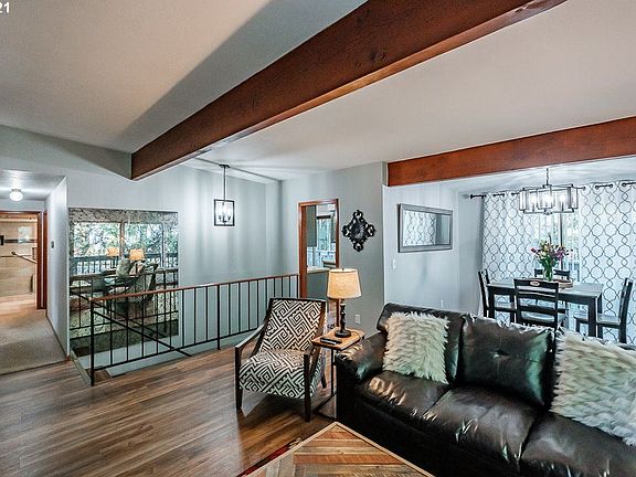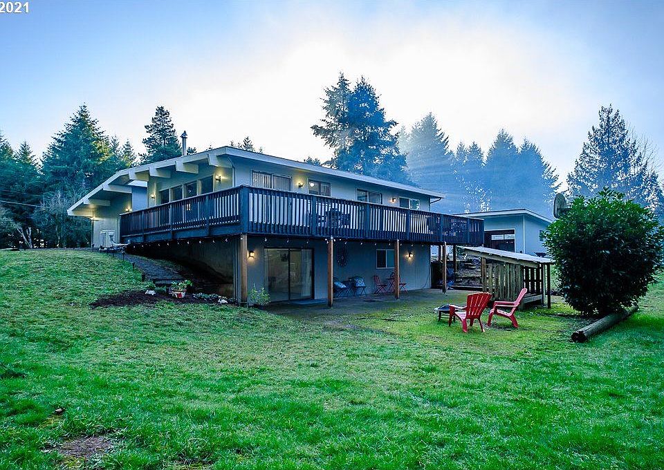 Loaded with character this custom Mid-Century Modern home welcomes you with almost an acre of of private & secluded property just minutes to I5, schools & shopping. Lots of architectural style, vaulted ceilings, exposed beams, walls of windows, nice open staircase with metal railing, wood burning fireplace, updated bathrooms, new flooring, paint & more. Great for entertaining with its wrap around deck & large family room that leads to covered patio.20x24 garage, 28x22 SHOP & 8x10 office