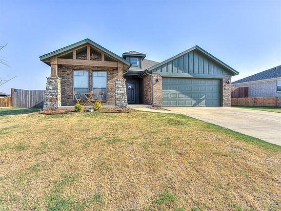 Welcome to this beautifully crafted new Craftsman-style home, ideally located just minutes from downtown Blanchard. Combining traditional craftsmanship with modern amenities, this home offers both style and comfort for today’s lifestyle. Inside, you'll be greeted by high ceilings that create an airy, open atmosphere throughout the spacious rooms. The chef-inspired kitchen boasts custom painted cabinets, sleek quartz countertops, and top-of-the-line finishes, making it a perfect space for cooking, entertaining, or relaxing with family. The thoughtfully designed floor plan ensures ample space for living and entertaining, with large bedrooms and living areas that are bathed in natural light, creating a warm and inviting environment. Step outside to discover a large, private backyard, perfect for outdoor activities and relaxation. The expansive space offers endless possibilities for gardening, play, or entertaining. For pet lovers, a dedicated dog run ensures your furry friends have a safe, enclosed area to roam and enjoy. Located in a desirable neighborhood near town, this home provides easy access to local shops, dining, and schools, all while offering a peaceful retreat with plenty of space to spread out and unwind. It’s the perfect blend of convenience, comfort, and craftsmanship. Come see this wonderful home and all it has to offer, including additional finance options and up to $10,000 in seller concessions.