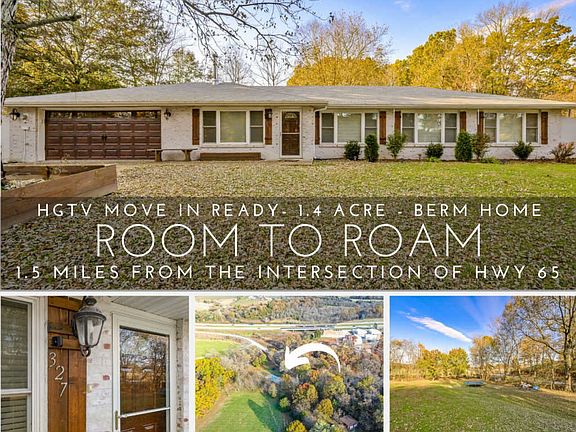 HGTV, like new, Ozark home...the awesomely located, super efficient berm home you've been looking for! Tucked away next to a wet weather stream on a peaceful 1.4 acres and only 1.5 miles to the Ozark Wal-mart/65 Hwy, you will absolutely adore: the XL garage with room for a workshop, new everything (appliances, water heater, hvac, flooring, paint, light & plumbing fixtures), light tubes that flood in natural light, programable thermostat, the cozy wood burning stove and convenient wood box to store wood in the winter, all cottage style doors, ceramic wood tile, open floor plan from living to kitchen, custom blinds, led recessed lighting, and the gurgling from the wet weather stream right out of the front door. Minutes from everything for next to nothing! Room to roam @ 327 Riverdale Road.