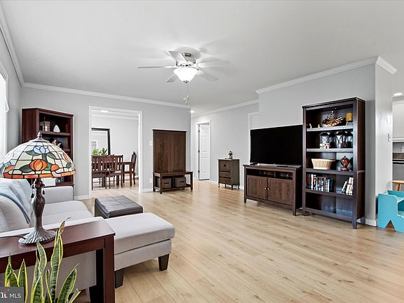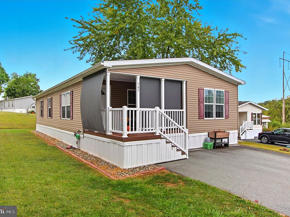Beautifully Updated 2018 Double-Wide in Friendly 55+ Community-- Come tour this beautifully (updated in 2024) double wide home in friendly 55 plus community! Two bedrooms with primary bedroom, walk-in closet and bath. Living room is open to dedicated dining room for gatherings and a spacious modern eat in kitchen with plenty of cabinets. Also find a separate laundry/ mudroom. Outside you will find a welcoming front porch for relaxation. and a side yard with spacious shed. Move in ready and waiting for you! The ground lease is $520 per month and includes trash and sewer. Park approval is needed. Maximum pet number is two, must be under 30 lbs.