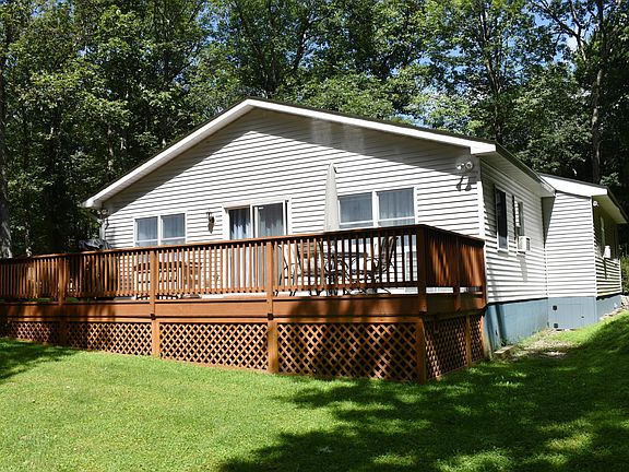 Private & Peaceful settingClose to Pecks PondThis landscaped vinyl sided ranch is perfect for year round of vacation living. offering 2 bedrooms 2 full baths large living room leading to large private open deck for entertaining, eat in kitchen. large circular driveway and 2 sheds, car storage and large work shop. Beautiful setting with large yard.
