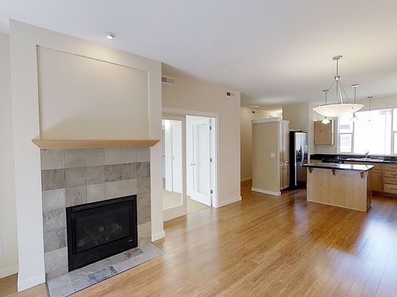 Beautiful upper end condo in a fantastic location easy access to dining, shopping, parks & more. Beautiful open floor plan with bamboo floors, granite counters, high end SS appliances, gas fireplace & tons of storage. Light & Bright with great covered balcony off of living room. Master suite has a huge walk-in closet & tons of natural light. Single car garage makes parking easy! Quiet upper, end unit with great privacy.