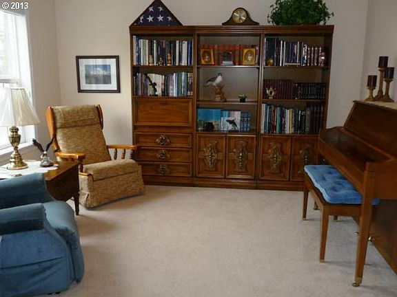 Incredible peaceful ambiance! Windows perfectly placed to showcase permanent greenspace! Spacious tiled entry.Gas fireplace in FR for winter-time warmth. Eating space+bar in exceptional kitchen;sep rm off kitchen with pantry,cabinets & utility sink. Coved ceilings in MBR suite. Loft area by MBR suitable for computer workspace.2nd family/game room in Bsmt with myriad amount of storage.Huge garage with high ceilings.O/S deck/paver patio.