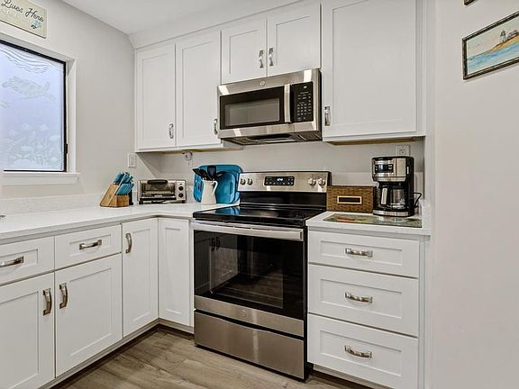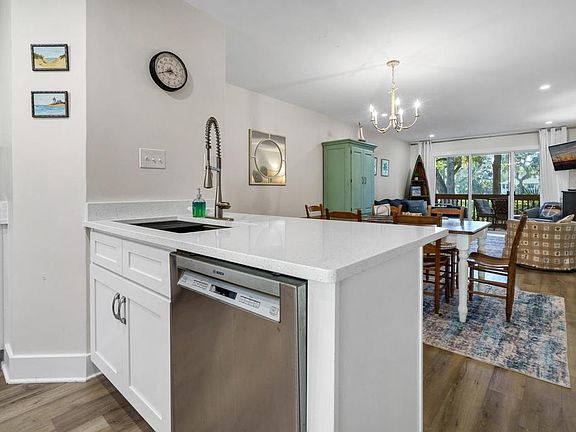 Completely renovated and beautifully decorated 1st Floor Villa featuring 2 BR and 2 BA, Large covered Deck and expansive views of the 8th green and 9th tee box of the Plantation Course. There are very few steps to the entrance and the villa has its own storage room near the entrance steps. Perfect for all of your beach items and bicycles. The remodeled kitchen is open to the living/dining area and features stainless appliances, under mount sink and beautiful quartz countertops. A guest bedroom with adjacent renovated full bath is located near the entrance. The new LVP flooring flows throughout the Villa. Entertain in the spacious living area that flows to the large covered deck. A hall leads to the Primary Bedroom and renovated Bathroom. Sold furnished with a small exclusion list!