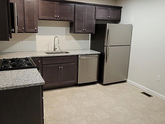 New construction End Unit Townhouse (Unit 5) style apartment. On the first floor you will find a living room, half bath and kitchen/dining area. On the second floor, there are 2 bedrooms and a full bath. The full basement has is for storage and washer and dryer hook ups. The home has forced hot air, central ac and the heating fuel is natural gas. Please not this is Unit 5 that is available. Owner pays water and sewer. 2 car parking, no smoking, no pets