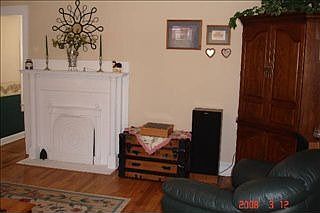 Covered front porch with swing. Corner lot with fenced back yard. Some hardwood floors.