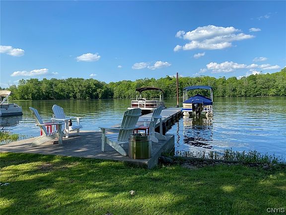The opportunity to purchase over an acre of CNY Waterfront property in this price range is rare. The "Lodge" (1991 mobile home) and "Party Barn" (24'x24' outbuilding) overlook 120' of Pristine Seneca River waterfront. Cross Lake and the 525-mile NYS Canal System entrance are just three minutes away. Cross Lake is one of CNY's "best-kept secrets," and the scenic NYS Canal System was recently designated a National Historic Landmark. The party barn with utilities and a loft is ready to be converted into 600 square feet of additional living space – many options with a bit of imagination. The property includes a 60-foot Aluminum roll-in floating dock with a replacement cost of $30,00. A private boat launch provides easy access throughout the summer. As a bonus, an RV site with electrical service is available for friends' and relatives' visits. The shoreline features a 12' x 14' concrete patio. Seneca River and Cross Lake are ideal for jet skis, sailing, kayaking, traveling throughout the canal system, and fishing - don't miss this opportunity. All this and just 15-20 minutes from Syracuse, Auburn, Baldwinsville and Skaneateles Village! Open House 12 -2 Sunday (8/6).
