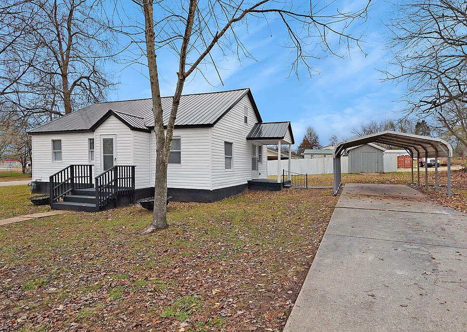 Move in Ready! Newly remodeled home in convenient location! Home was completley remodeled from the studs out! Vaulted ceilings with beautiful wood beams and open floor plan give you a spacious feel upon entry. Some of the upgrades include Brand new vinyl laminate flooring, tile in bathroom, fresh cabinets, new sheetrock and fresh paint, all new fixtures, newer metal roof, new vinyl windows and vinyl siding offer easy maintenance for years to come! All this resting on a corner lot at the edge of town with a carport out front and concrete drive! Close to shopping, medical facilities and the New Ozark Medical Center. A short drive to many of the Ozark Lakes and Rivers for your recreational enjoyment. Schedule your showing today!