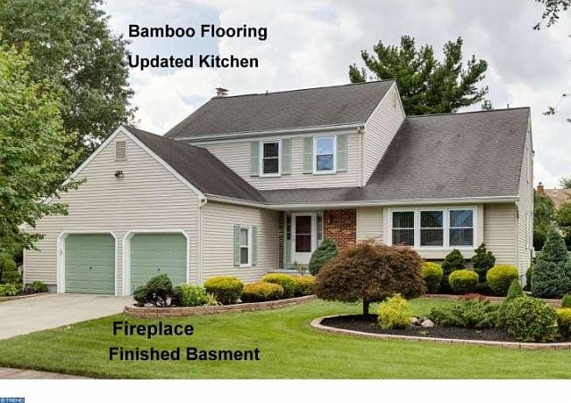 Welcome to your new home in Evesham Township (Marlton). Featuring 4 Bedrooms, 2.5 Bathrooms, Finished Basement, Fenced Yard and lots more! You'll immediately notice the beautiful landscaping and inviting Front Porch. Greet your guests in the Foyer with convenient closet and centrally located Powder Room. Beautiful Bamboo Hardwood Flooring Flows throughout the main level. Updated Kitchen includes contemporary cabinetry, Solid-Surface Counter Tops, Stainless Steel Appliance package, Center Island and Ceramic Tile Flooring. Easy access to the large Deck through Sliding Doors. Open Family Room features beautiful Wood-Burning Brick Fireplace and Flat Screen TV (included in sale). Also located on the main level is a Formal Dining Room, large Laundry/Mud Room and aces to the 2-Car Garage with power openers. On the upper level you will find 3 generously-sized bedrooms plus a Master Bedroom with Walk-In closet, private Bathroom and additional Sink/Vanity area. New Carpet throughout the Second Floor, Vaulted Ceilings and Open-Concept library area overlook the Living Room. Need more space? How about a Finished Basement with built-in perimeter drain system. Fully Fenced yard, Walk-In Shed and Irrigation system. This home has been freshly painted, is spotlessly clean and includes updated Castle Windows with a Lifetime Warranty! Awesome location just off Routes 70 and 73!