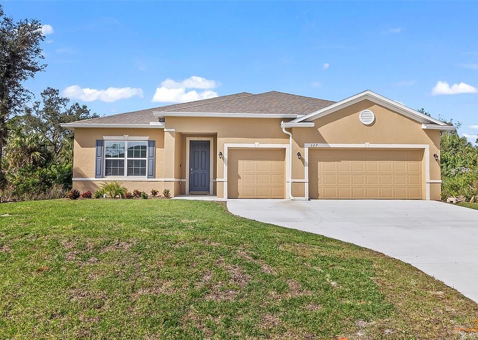 ***seller offering concession toward rate by down or closing costs*** Welcome to your BRAND NEW, NEVER BEEN LIVED IN charming 3-bedroom, 2-bathroom home with a versatile flex space, located on the border of Port Charlotte- almost into North Port. This offers an inviting open concept living and dining area, perfect for entertaining! As you step inside, you're greeted by a spacious living room that seamlessly flows into the dining area and expansive kitchen. The kitchen boasts a large, granite-topped island that doubles as a breakfast bar, providing ample space for meal preparation and casual dining. The primary suite features a massive walk-in closet, walk in shower tiled to the ceiling, and en-suite bathroom with dual vanity sinks, Two additional bedrooms offer plenty of space for family members or guests, with a shared bathroom all in the same hallway. Step outside to discover the enclosed lanai area that features a huge picture window screen, providing a tranquil oasis for relaxation and outdoor enjoyment. Whether you're savoring your morning coffee or hosting a barbecue with friends, this private retreat offers the perfect setting to soak up Florida's sunshine year-round. The partially fenced back yard offers privacy, and with this homes prime location close to shopping centers, restaurants, and turquoise water beaches, this home presents an unparalleled opportunity to embrace the Florida Lifestyle. Call today for a private tour!