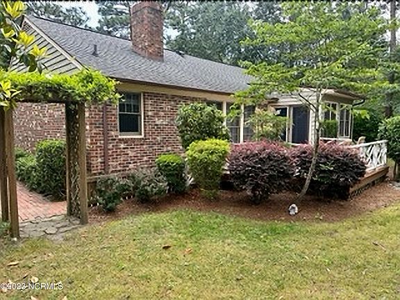 Charming home in the heart of Pinehurst. Lovingly cared for home with 3 bedrooms, 2 bathrooms, vaulted living room, dining room and sunroom. Split bedroom plan with eat-in kitchen. You will love the outside! Lush landscaping, detached garage with breezeway, brick courtyard, brick walkway, arbor, private backyard and great deck. Don't miss this one. Very close to the Village of Pinehurst, hospital and traffic circle. Great location for 2024 U.S. Open.
