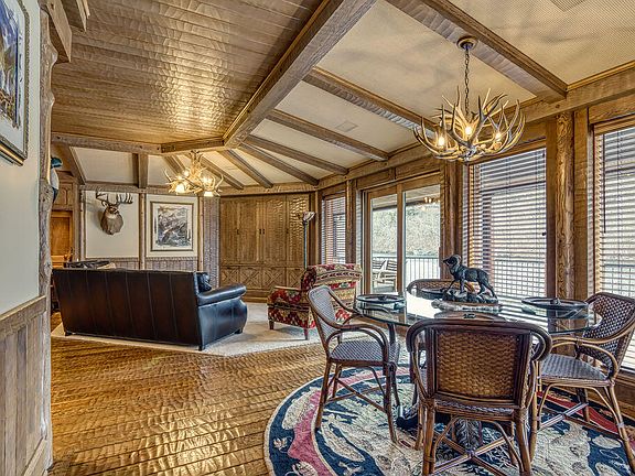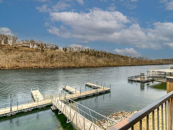 Lake Taneycomo Luxury, Lake Front/Lake view. Hand Hewn White Oak Quarter Sawn floors, Cabinets and Doors. Rustic Cabin feel. Kasota stone countertops, add I Timbermill wood burning oven. New Roof 2024, New Carpet, New Refrigerator, New Acorn Lift Chair, 2 New Toilets. Handicap accessible to main level. Drywalled & Tiled Garage with cabinets. Lots of Built-in s, each bdrm has own bath, mins to Downtown Branson & Branson Landing, even closer by boat. 2 Boat Slips included, walk out your patio to Lake Taneycomo and your Boat dock. Garage Plus a Carport, Lake and Community Swimming Pool. Selling unit furnished. Can negotiate art & mounts in unit. Must See! Won't Last.